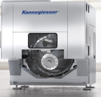 A surface which has been polished electrolytically. Both the rotating and the pivoting movements are carried out by frequency inverter-controlled, direct drives, without v-belts. The batch is unloaded without any requirement for either an integrated belt or a ‘pusher’.