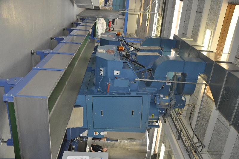 Unloading conveyor to handle 4 dryers, including frequency control. Brand Rugdved